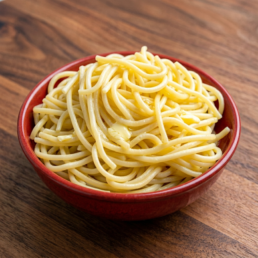 Tender noodles tossed with creamy butter.