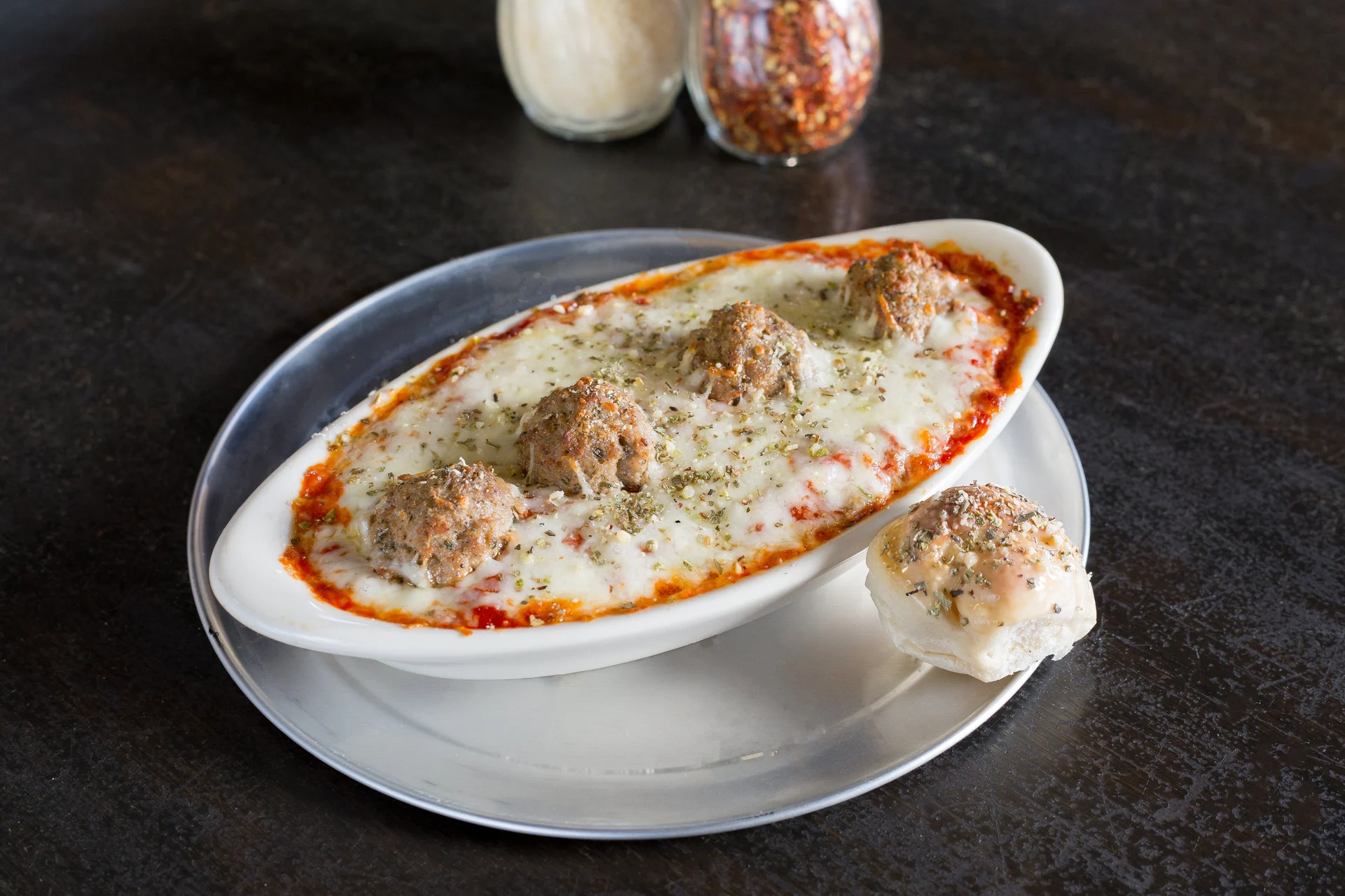 Baked fresh with meatballs, topped with cheese, served with 4 garlic knots and a side of marinara.