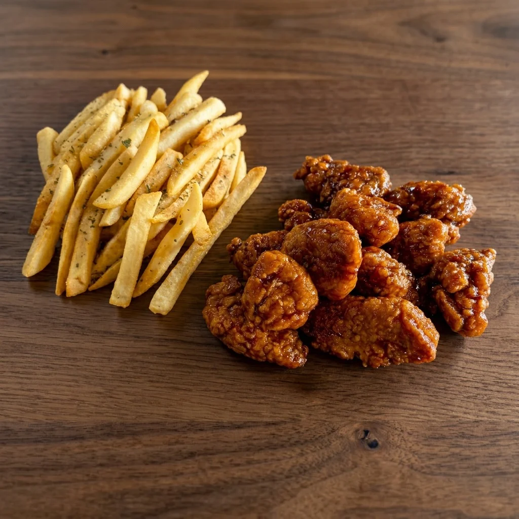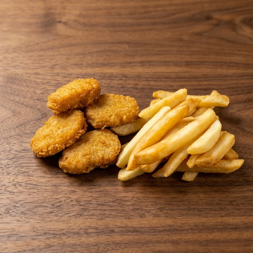 Four nuggets and fries served with a sauce of your choice.