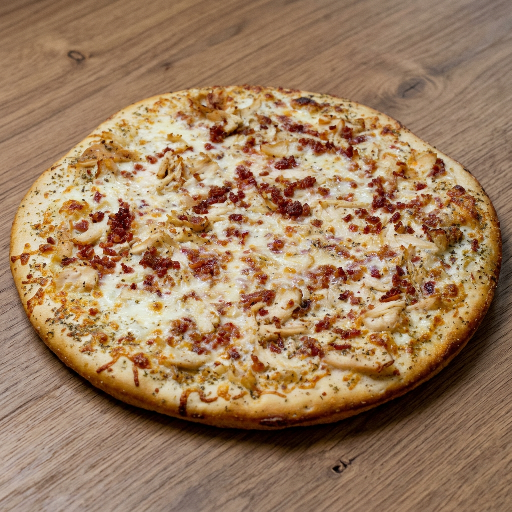 House-made ranch base loaded with roasted chicken, bacon, and mozzarella cheese. Feeds 4-5