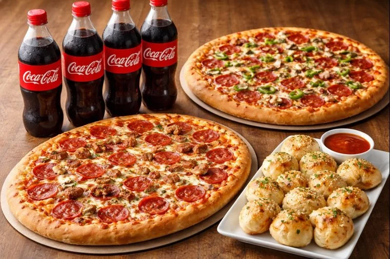 Two large, two topping pizzas, garlic knots, & four 20 oz bottled sodas. *Available for carryout only. No substitutions.