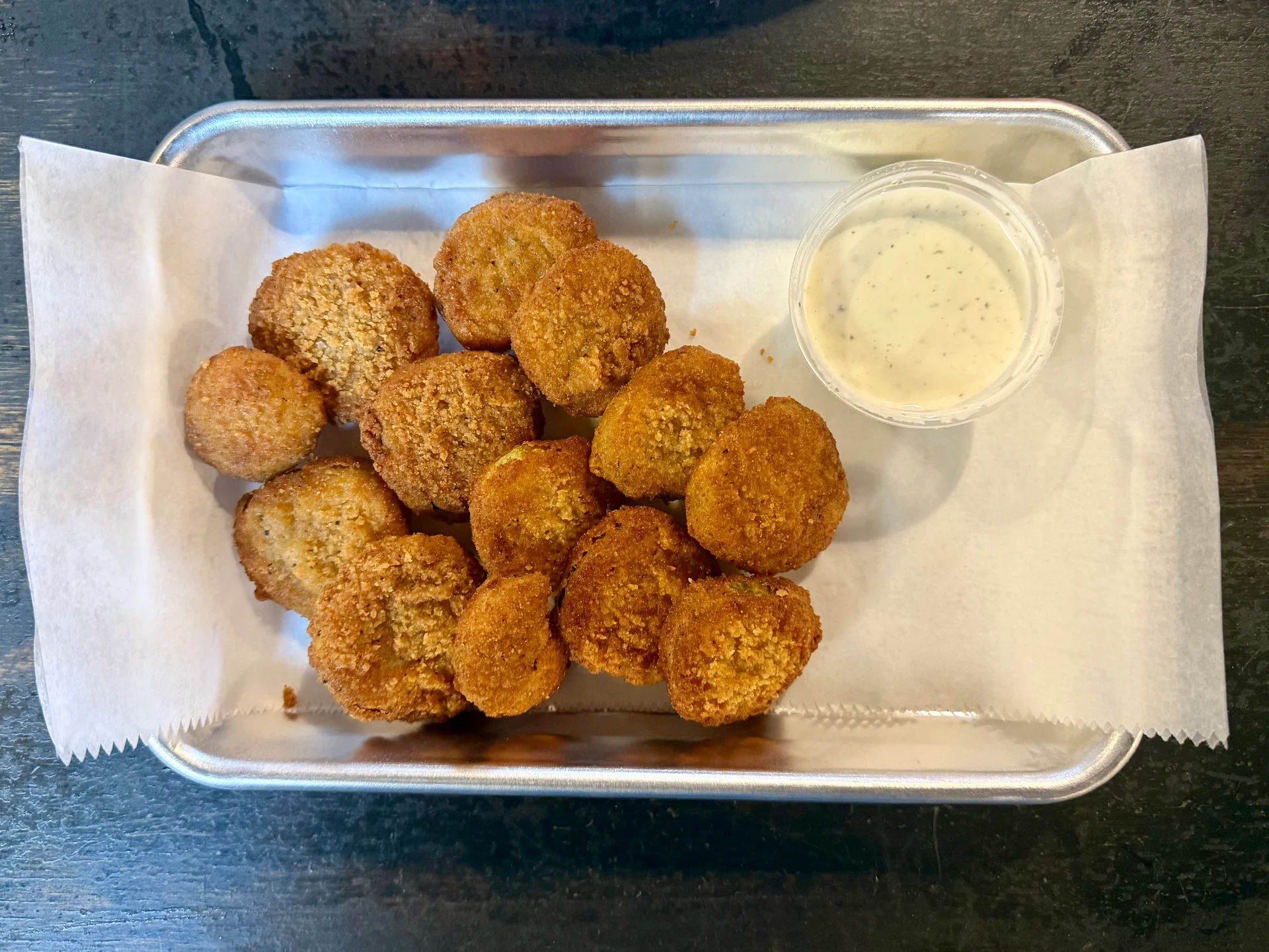 Breaded and fried pickle slices with a little kick, served with house-made ranch.