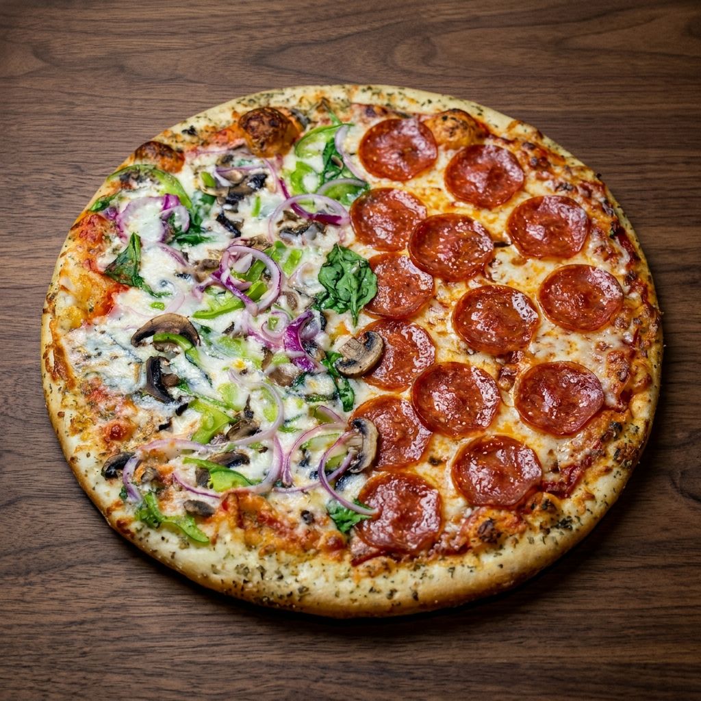 Mix it up—go half & half with any of our specialty pizzas or build your own on each side. One pie, twice the personality. Feeds 4-5.