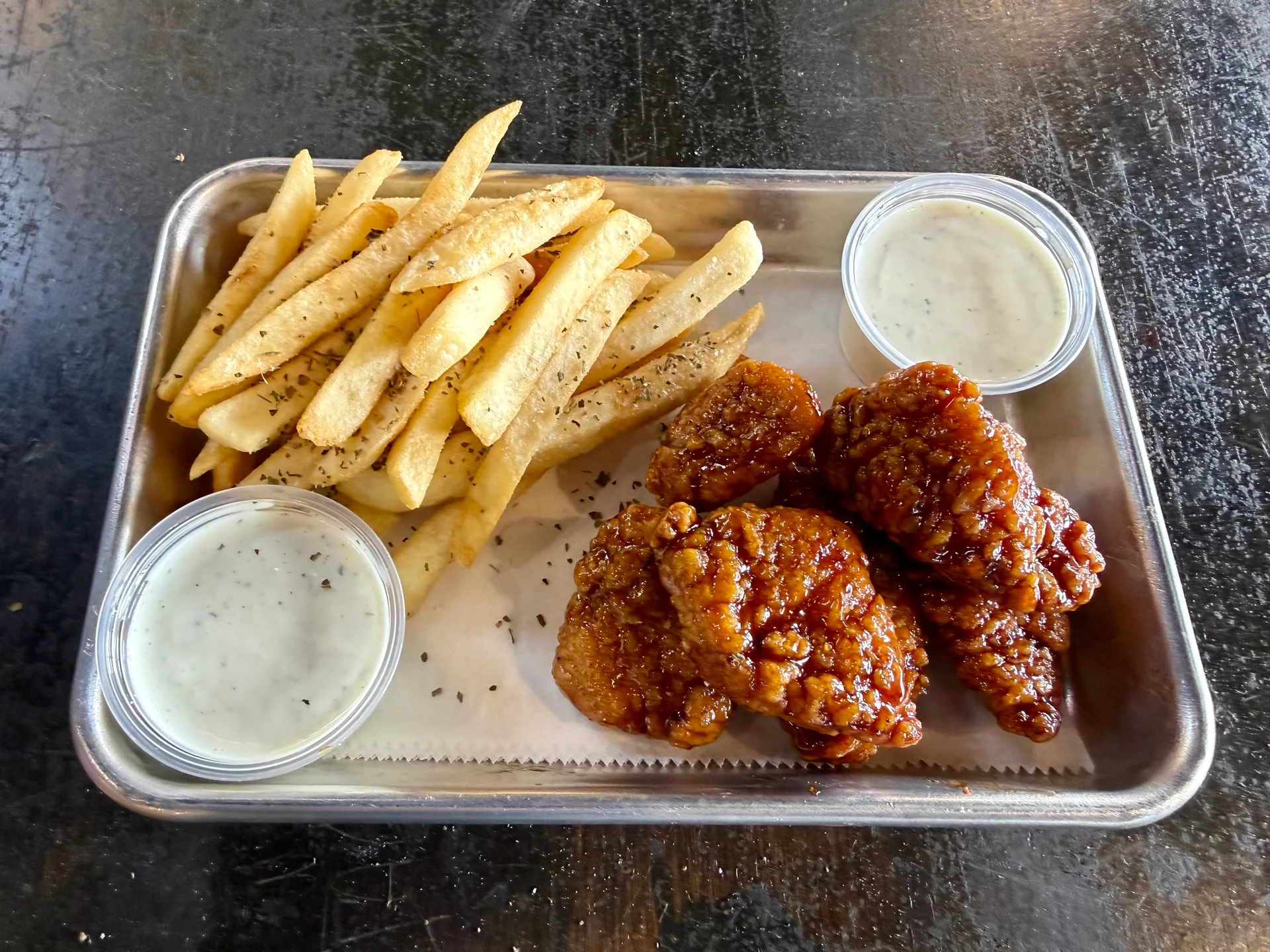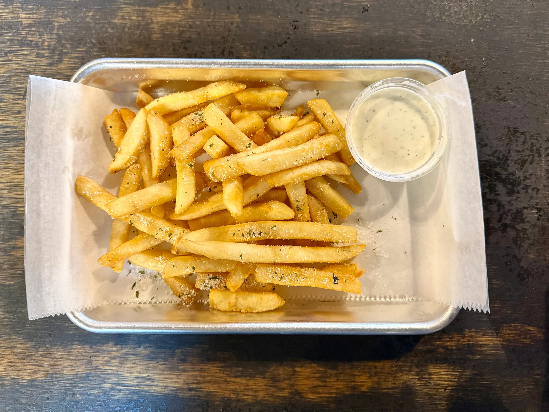Idaho potatoes fried and dusted with garlic seasoning, served with house-made ranch.