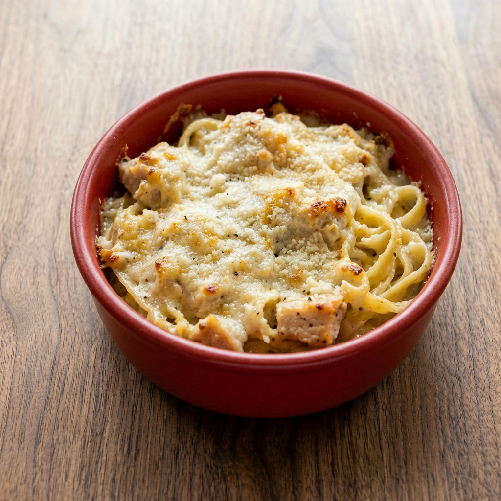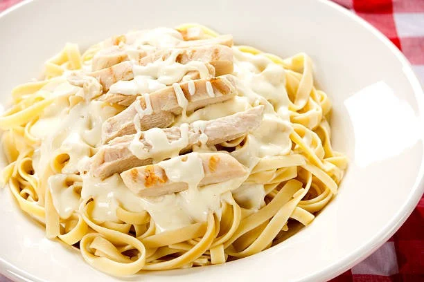 Fettuccini coated with alfredo sauce and tossed with roasted chicken.