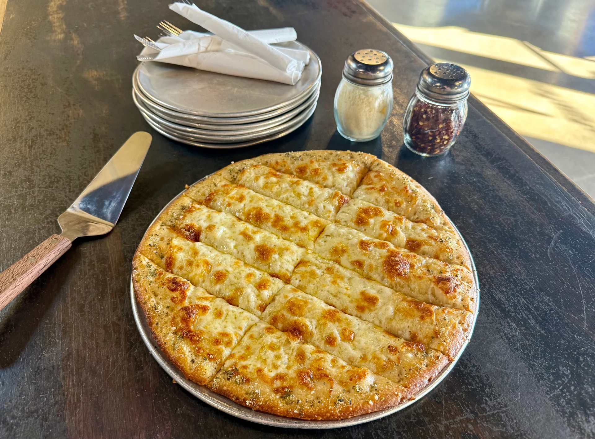 12" pizza cut into strips, loaded with garlic butter and cheese, served with marinara.