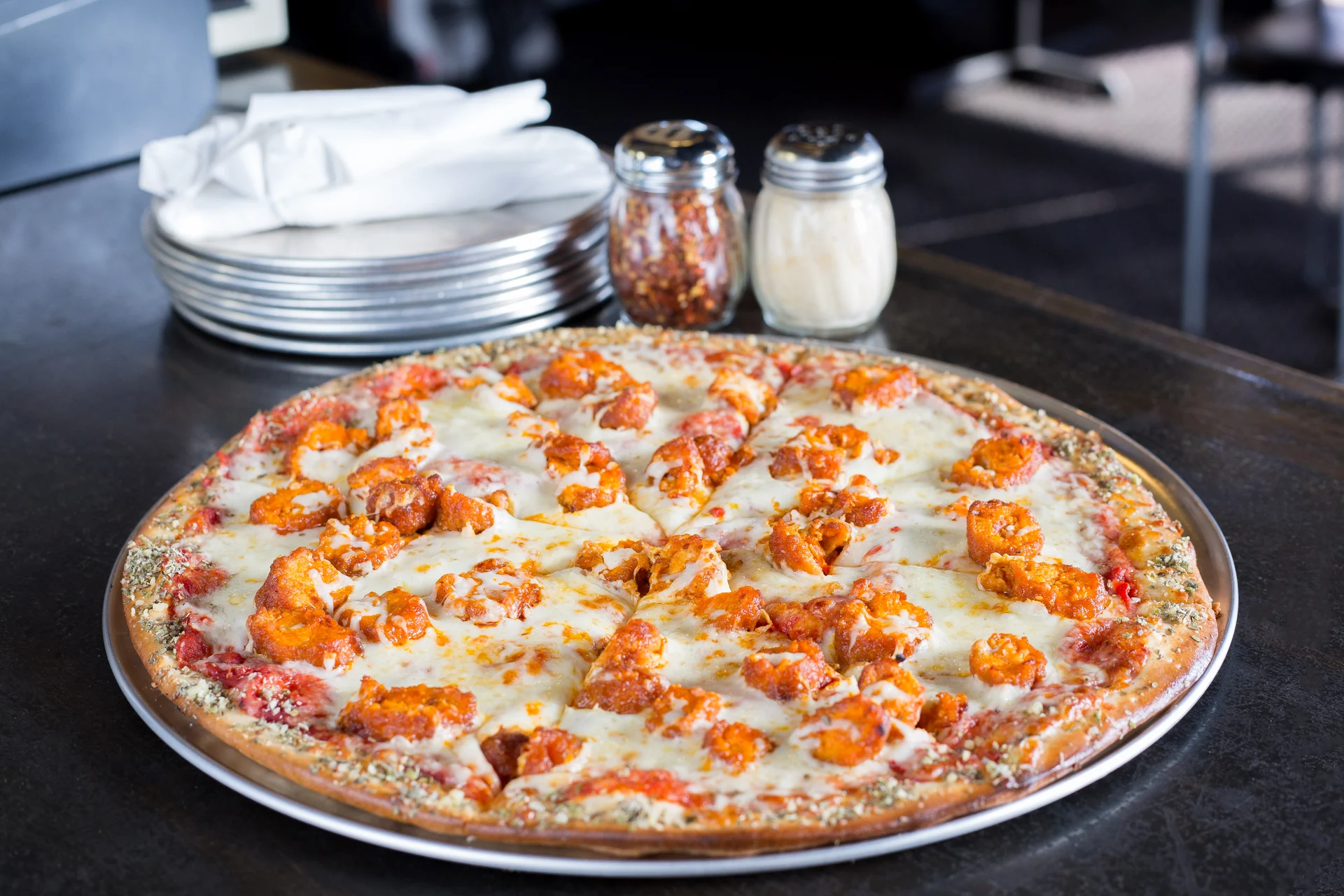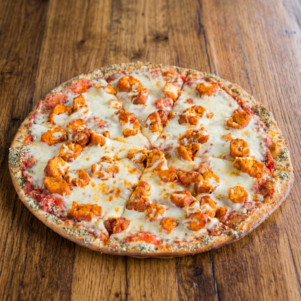 Our buffalo sauce base piled high with mozzarella and your choice of fried or roasted chicken. Feeds 4-5