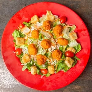 Fresh greens, tomatoes, red onion, carrots, croutons, and cheese with your choice of fried or roasted buffalo chicken.