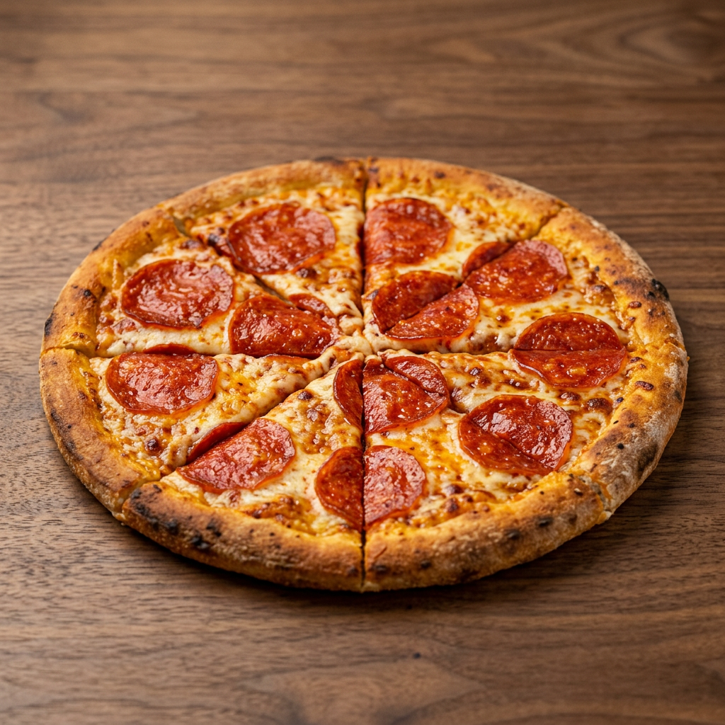 Loaded with pepperoni, canadian bacon, ground beef, pork sausage crumbles, bacon, and Italian meatballs. Feeds 5-8